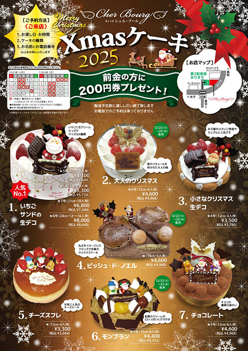 クリスマスケーキを1台ご予約に付き「200円商品券」をプレゼント!